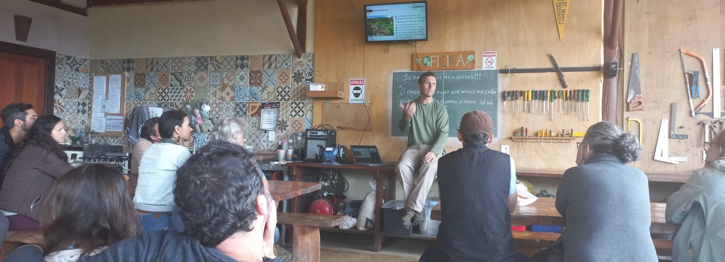 On October 25th, Eco Caminhos opened its doors to the Nova Friburgo community for its first-ever Open Day, offering hands-on bioconstruction workshops, agroforestry experiences, and a complete guided tour of the farm for all those interested in learning more about our work. The event allowed visitors to engage in practical learning, explore sustainable practices, and interact with our international community. Our first Open Day strengthened the farm’s role as a center for environmental education, ecotourism, and sustainability, connecting people with nature and with each other.